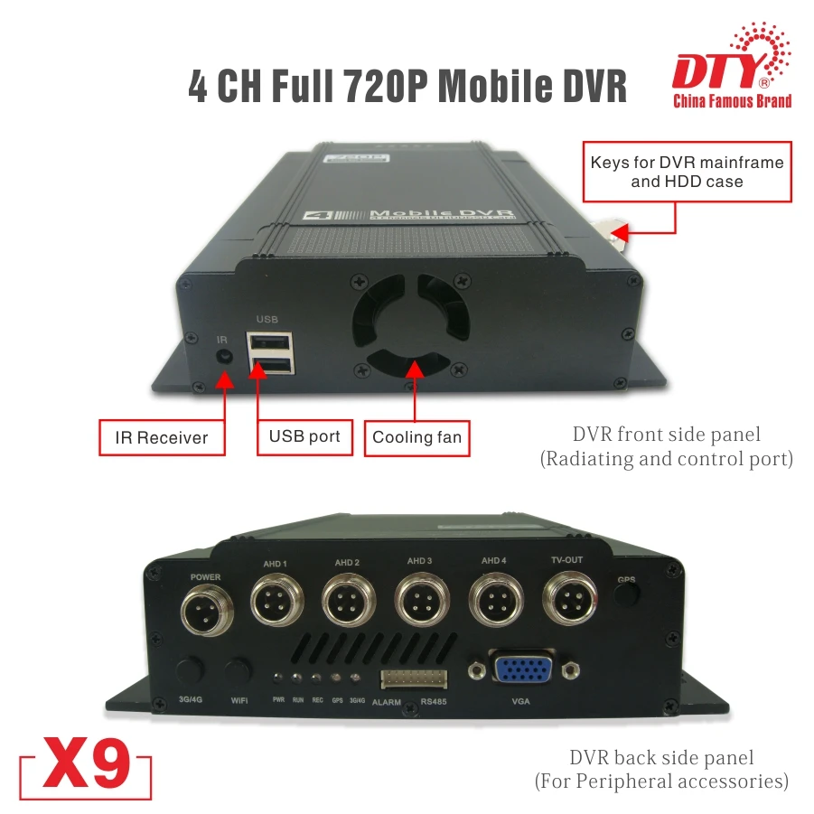 X9s-4GW ( with 4G GPS WIFI) 4G LTE 4CH 720P HDD & SD Card Mobile DVR Vehicle Surveillance and Manag