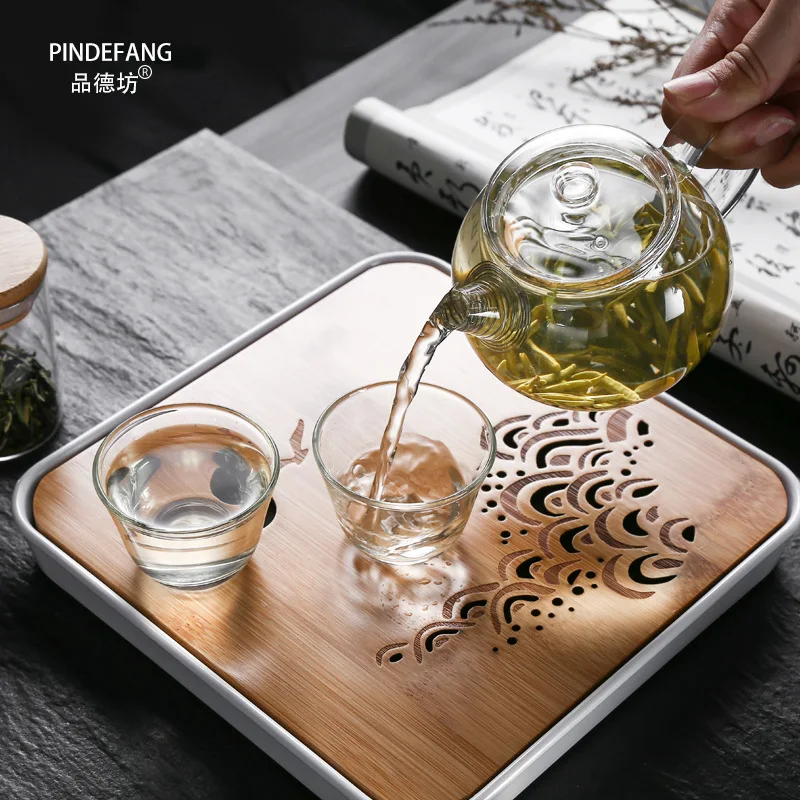 HIGH QUALITY Vehicle Travelling Teaset Portable Carry Case Kit for Outdoor Can Bamboo Tea Tray Green Te pot 4 cu