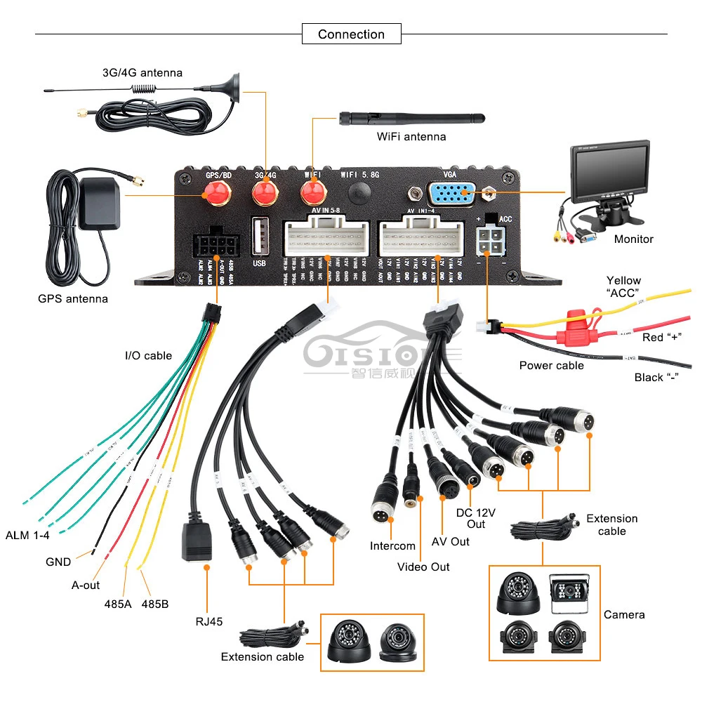 4G GPS 8CH Channel AHD Car Mobile DVR SD Realtime Video Recorder 7" LCD Screen Set For Auto Truck B