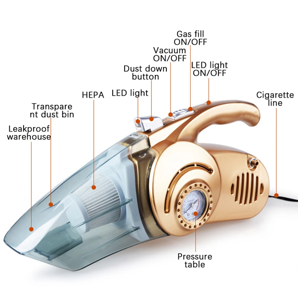 NEW 4-in 1 Car Vacuum Cleaner High Power Dry and Wet Vacuum Cleaners ABS Vehicle-mounted Multifunct