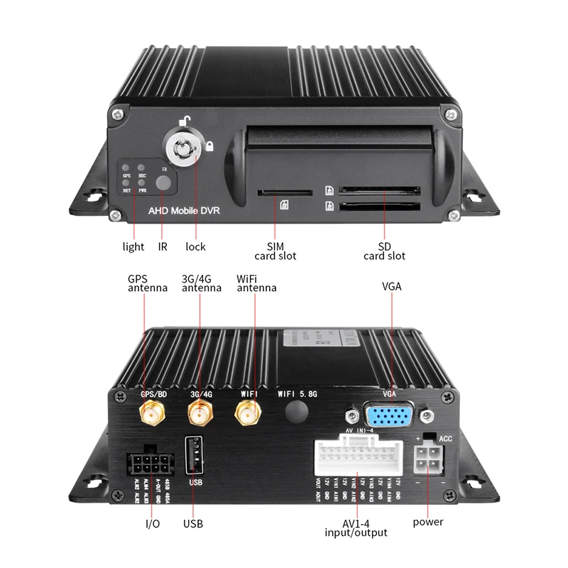 Truck DVR Security4G+GPS+WIFI 4CH 1080P AHD Mobile DVRIphone/Android Remote Monitor GPS I/O Alarm G
